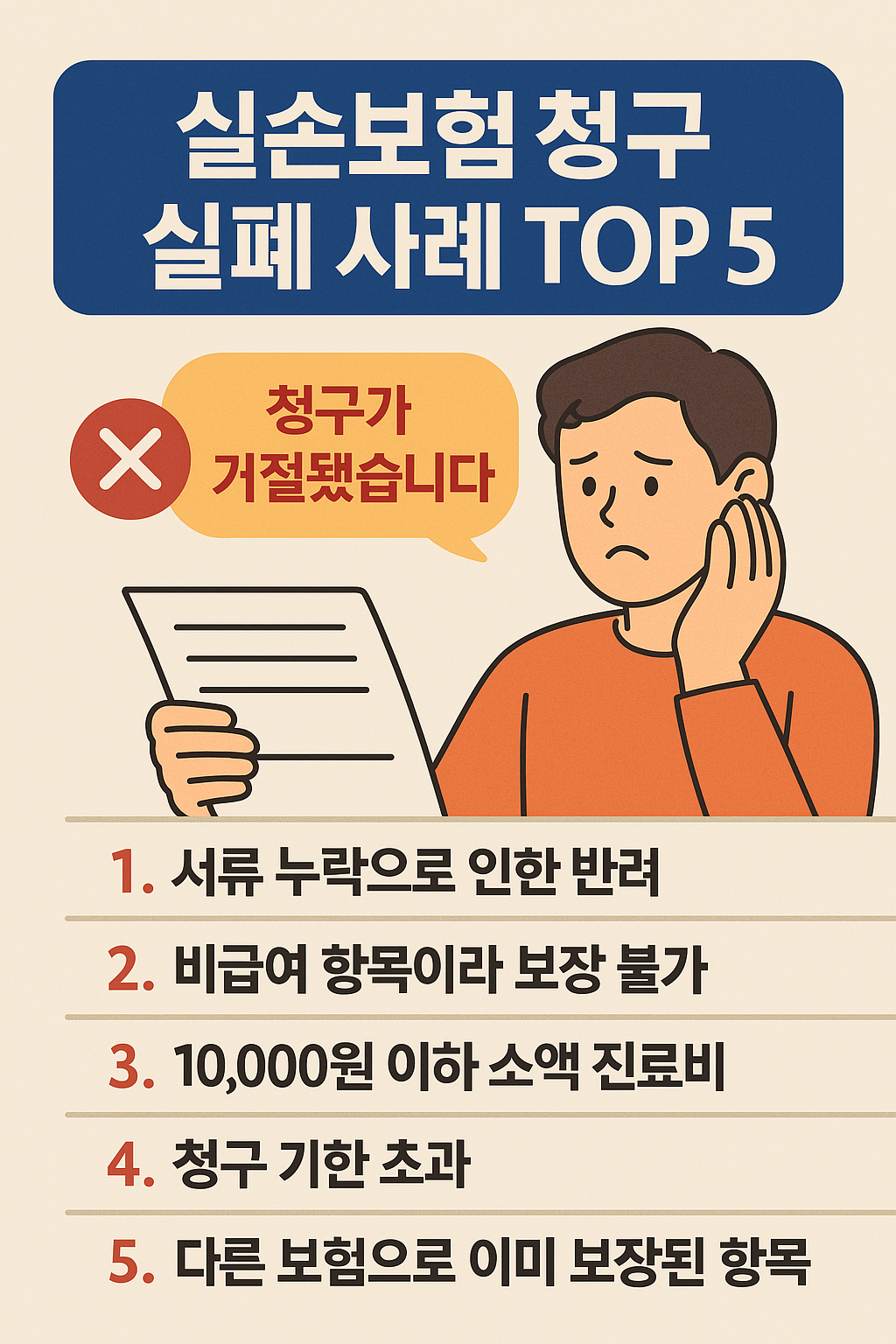 오늘은 실손보험에서 자주 발생하는 청구 실패 사례 5가지를 소개할게요.