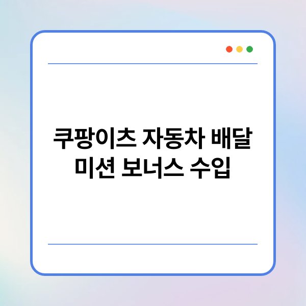 쿠팡이츠의 자동차 배달 미션은 배달원이 특정 조건을 충족하고 정해진 시간 내에 배달 업무를 완료하는 시스템입니다. 이 미션은 배달 경로의 최적화를 통해 효율적인 배달을 목표로 합니다. 배달원은 미션을 통해 보너스를 받을 수 있으며, 이는 기본 수입에 추가되는 형태로 제공됩니다.