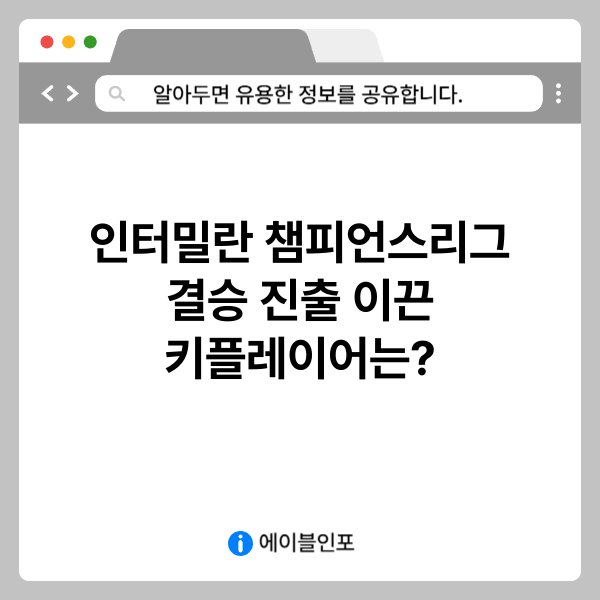 최근 인터밀란이 UEFA 챔피언스리그 결승에 진출하면서 팬들의 이목이 집중되고 있습니다. 이번 시즌 인터밀란의 성과에는 여러 키플레이어들이 중요한 역할을 했습니다. 특히 팀의 승리에 기여한 선수들의 개인적인 활약이 더욱 두드러졌습니다. 이 글에서는 인터밀란의 챔피언스리그 결승 진출을 이끈 키플레이어에 대해 자세히 살펴보겠습니다. 선수들의 기여와 팀 전술을 분석하여, 결승 진출의 배경을 명확히 파악할 수 있도록 하겠습니다.
