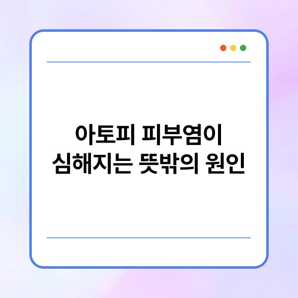 아토피 피부염은 현대인에게 흔히 발생하는 피부 질환으로, 다양한 요인에 의해 악화될 수 있습니다. 최근 연구에 따르면, 아토피 피부염이 심해지는 뜻밖의 원인들이 밝혀지고 있습니다. 이 글에서는 아토피 피부염의 악화 원인에 대한 정보를 집중적으로 다룰 예정입니다. 특히, 일반적으로 잘 알려지지 않은 요인들에 대해 설명하고, 이를 예방할 수 있는 방법도 소개하겠습니다. 아토피 피부염의 관리에 대한 정확한 정보를 제공하기 위해 본문을 구성하였습니다.