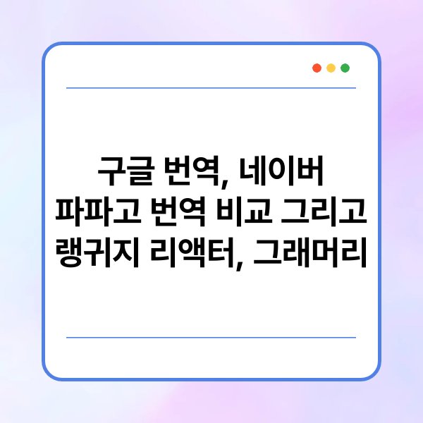최근 번역 서비스의 발전으로 다양한 번역 도구가 등장하고 있습니다. 구글 번역과 네이버 파파고는 많은 사용자에게 널리 알려진 서비스입니다. 이 외에도 랭귀지 리액터와 그래머리를 통해 번역의 정확성을 높일 수 있습니다. 본 글에서는 이들 번역 서비스의 특징과 차이점을 살펴보겠습니다. 각 서비스의 장단점을 비교하여 독자가 선택할 수 있는 기준을 제공할 것입니다.